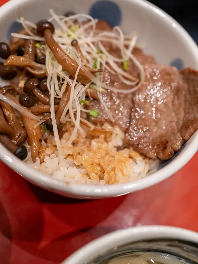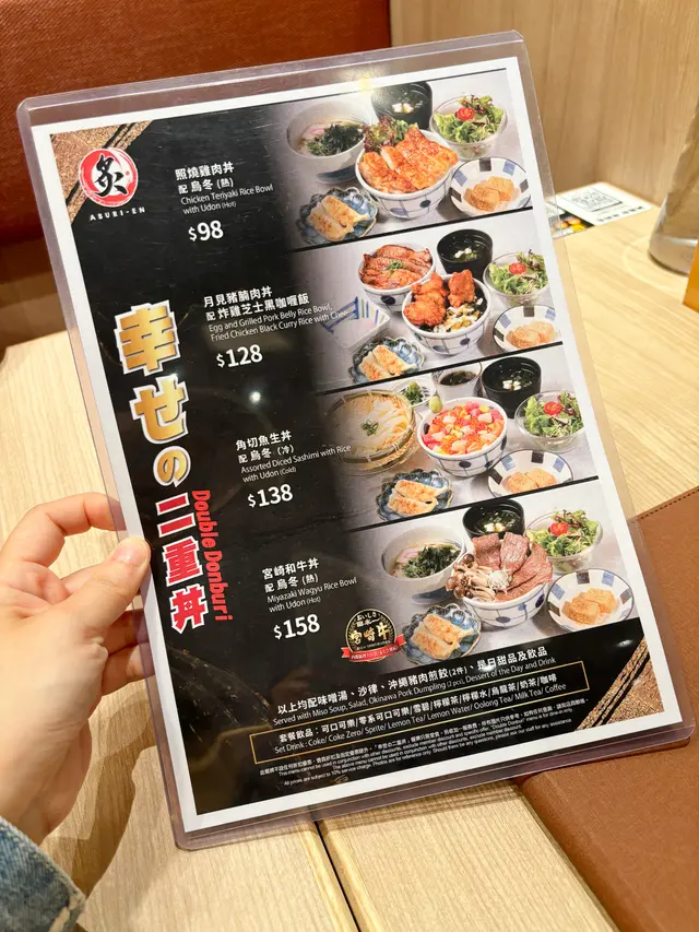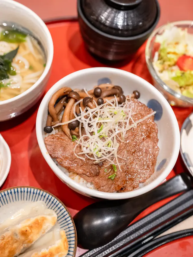 男生的話,這份套餐完全是飽肚之選🤭除了主角和牛丼外,還有一碗暖胃烏冬、味噌湯、沙律、沖繩豬肉煎餃2件、甜品及飲品,真的是超滿足!宮崎和牛入口即溶,豐腴的油香和飯一起吃讓飯也變得更好吃,還有肉質滿滿的煎餃,叫我如何不滿足。