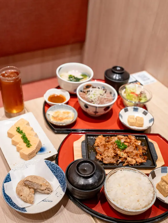 豚肉每一片都是掛滿燒汁,口感實在,沒有多餘油膩感,醬汁特別適合拌飯吃,套餐也是有味噌湯、是日甜品及飲品,這天的甜品是綿密帶微甜的黑糖蕨餅,小小的兩件恰到好處。