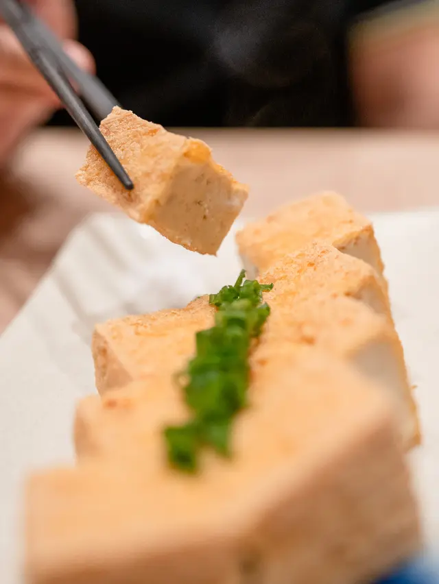 豆腐控真的會很愛這小食,外層炸的夠脆又不掛油,裡面豆腐依然嫩滑,沾一點點鹽吃味道更豐富,能好好感受黃豆的香。