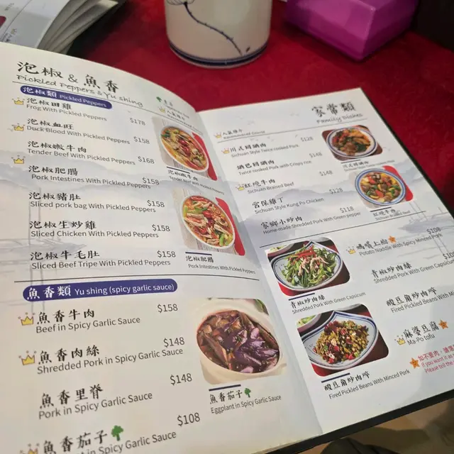 一坐低老闆娘已經好熱心介紹各種嘅菜式比我地,言談間得知原來係一間開左8年家庭式經營嘅餐廳,老闆娘嚟自四川所以對於每個菜式嘅做法或者味道都有一定程度嘅了解。