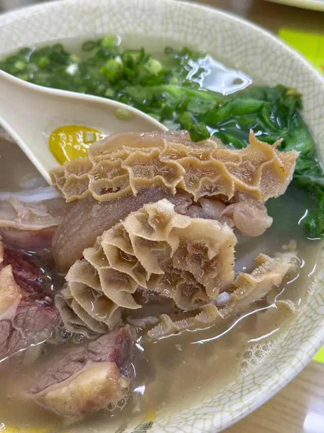 牛三寶河粉的豐富配料讓人眼前一亮,牛腩、牛筋和牛肚的搭配各具風味。河粉的口感滑潤,與牛肉的鮮香結合得恰到好處。牛腩特別軟嫩,牛肚也十分有嚼勁,讓整道菜的層次感更加豐富!🍲