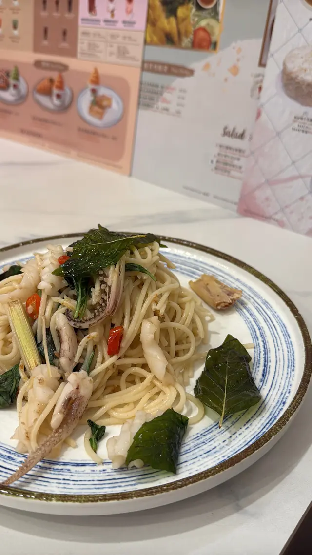 海鮮有蝦和魷魚,口感不錯,不會乾。