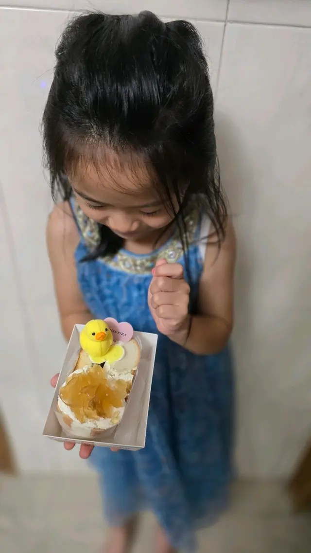 估唔到呢個係最有驚喜。貝果面鋪滿檸檬茶味啫哩,相當清新。 而見到造型 cutie 🐤 小外甥都表現得好興奮,有得食有得玩,小朋友就最開心嘞 💙