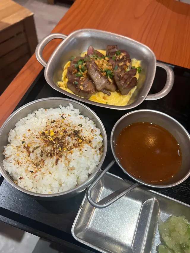 每款套餐包括珍珠白米飯🍚、滑炒玉子、蘭王蛋🥚蘿蔔蓉、山葵洋蔥漬物及昆布洋蔥湯