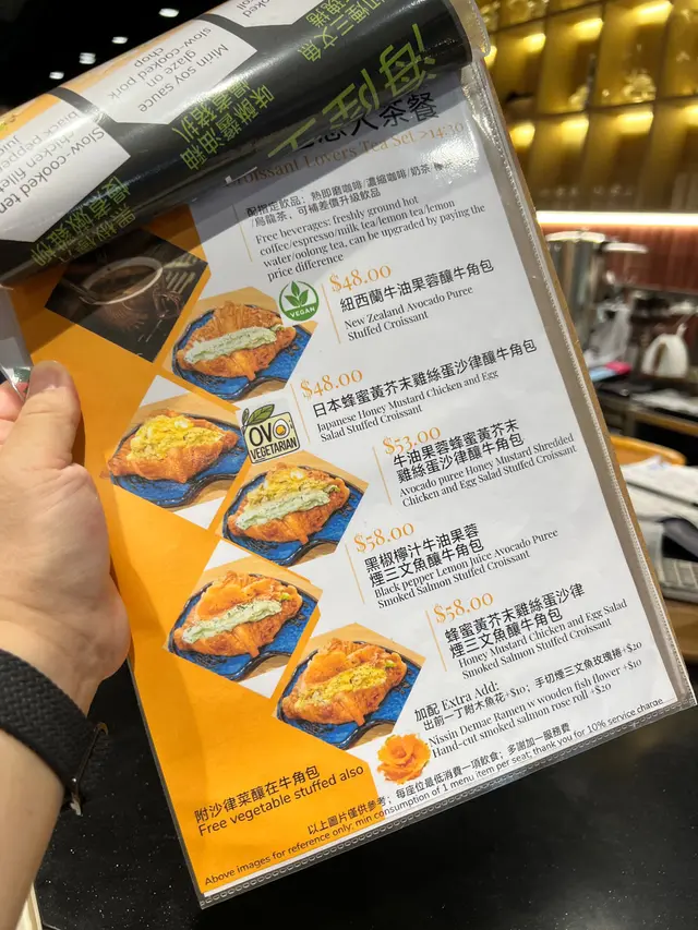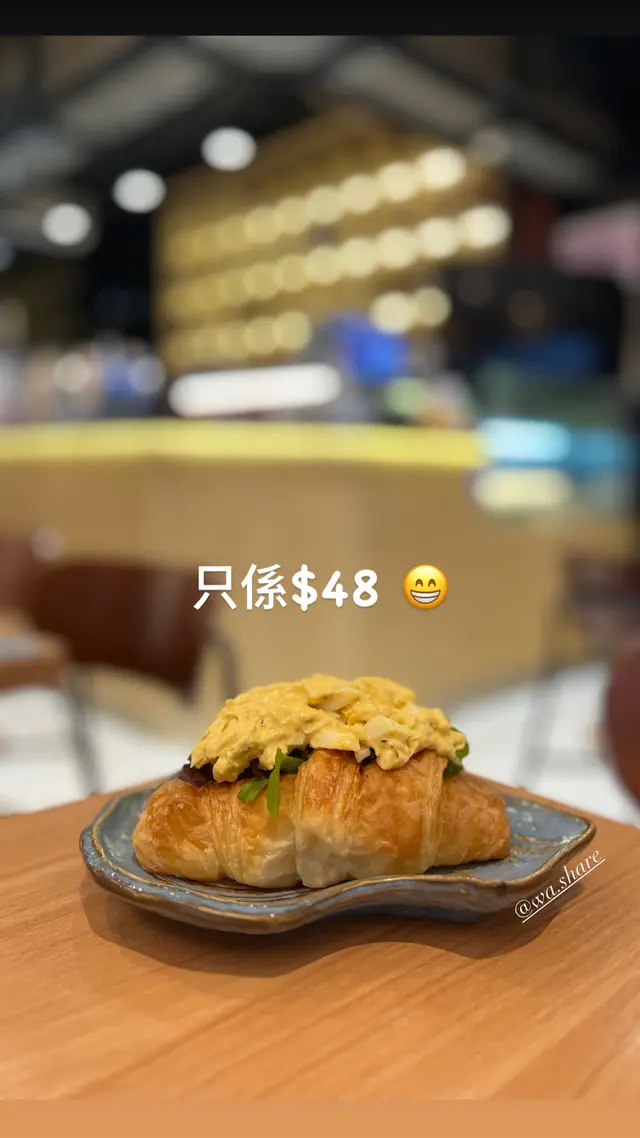 睇menu,平到有少少驚,早餐最平27蚊,下午茶$48!食唔食得㗎!? 點咗個Americano + 蜂蜜芥末蛋牛角包,個啡好掂喎!以我曾經住過中上環嘅標準嚟講,不輸名牌店,隻豆有炭烤過,幾nutty,似sumiyaki 多啲,最鐘意杯啡跟塊曲奇,我認為係標配,但好多店慳得就慳。牛角包正常,以茶餐份量可算係幾飽吓,$48真心抵。