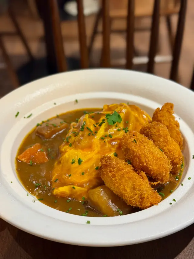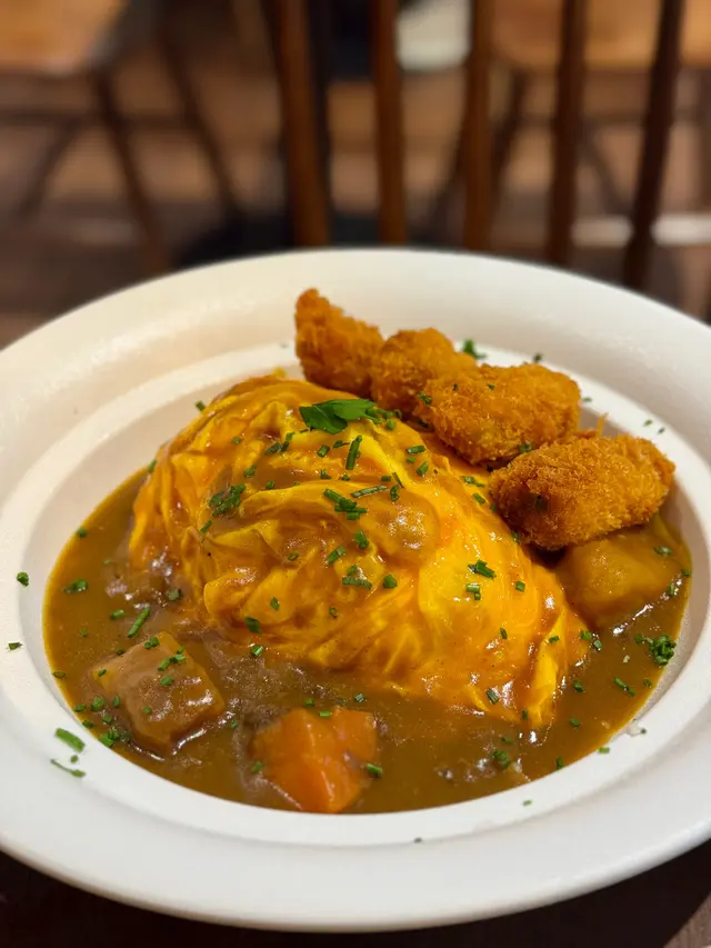吉列蠔也是熱騰騰,咬開有汁,咖哩濃郁惹味,配滑溜蛋包飯一流,紅蘿蔔及薯仔夠腍又入味。