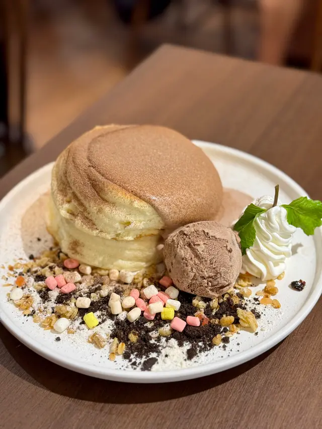 嘩好大份,質感鬆軟輕盈,表面的阿華田忌廉香滑,梳乎厘與朱古力雪糕一同品嚐,一熱一冷感覺好過癮。
