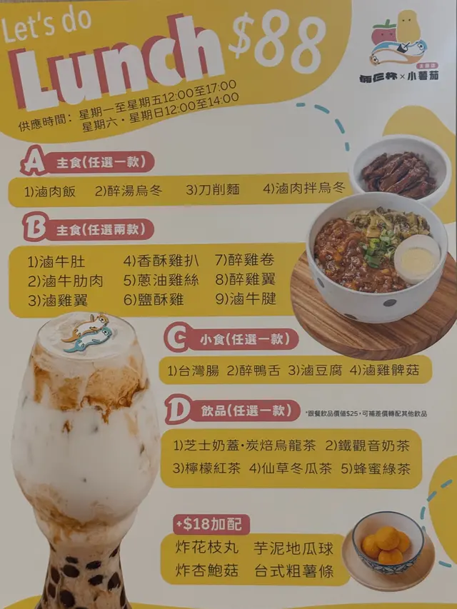 的任選主食+主食配餸2款+小食1款+特色手搖1杯✨另外+$18優惠價更加配指定小食👍🏼