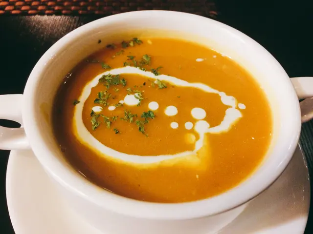 廚師精選餐湯 - 南瓜忌廉湯,南瓜味香濃,仲用忌廉畫上圖案~