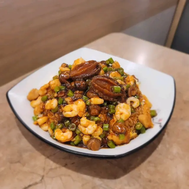 有飽魚,雞粒,蝦仁等食材,炒飯粒粒分明,香味撲鼻,蝦仁同埋蛋嘅搭配令口感更加豐富,飯粒滑順,整體味道均衡,份量仲要好大,適合3-4人分享。