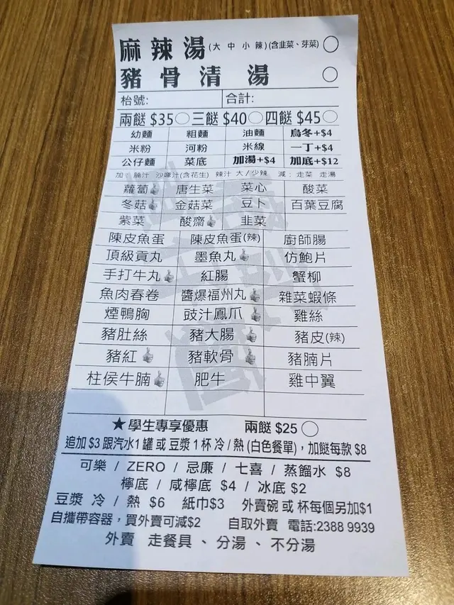 將軍澳區絕無僅有車仔麵 蘭茜minnie等级42021-05-11602 浏览 关注 今日去睇戲,順道食埋野,呢間鋪頭因為 疫情關係,曾經模過門釘,今次再戰,出發之前已經check清楚有無營業,平日下午容易搵位,因為本身腸胃剛好有啲唔舒服,點了清淡1) 招牌菇菌養生雞湯, 雞翼, 冬菇,福州魚丸米粉感想: 叫得做招牌湯低, 真係零舍唔同,有藥膳既味道,上菜時十分熱,啱晒唔舒服的我, 配菜另外分開上,做得好,唔會影響湯低味道,配菜樣樣都好平均!2) 麻辣湯底,墨魚丸,鳳爪 ,腩肉粗油麵感想: 酸麻辣湯底 ,分大/小辣, 可以迎合唔同人士嘅口味,配菜中規中矩! 有機會,會再去支持,湯低出色, 濃而不油,希望你Keep得住!以上食记乃用户个人意见 , 并不代表OpenRice之观点。赞好分享將軍澳區絕無僅有車仔麵 榕記車仔麵 https://s.openrice.com/QrLT0R44yW0检举 张贴 评分4味道4环境3服务3卫生3抵食用餐日期2021-05-07用餐途径堂食人均消费$50 (午餐)