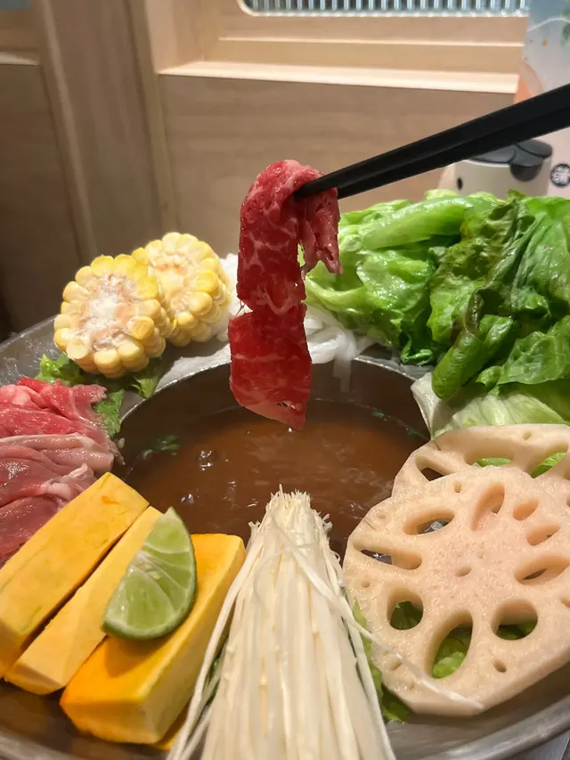 冬天必試!個鍋用爐仔keep住熱,湯底濃郁鮮美,配料有生菜、牛肉、豬肉、粟米、金菇、南瓜及蓮藕~ 最正係可以自己加米河粉落去煮,飽肚又暖胃!