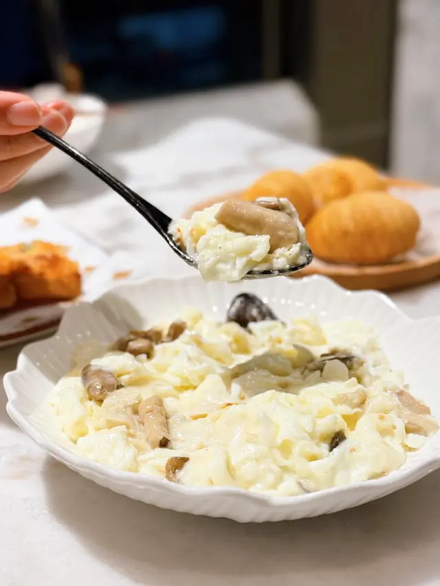 好似之前喺酒樓食嘅雪山叉燒包,表面睇落雪白🤍實則金黃酥脆💛有淡淡奶香同微甜,叉燒切成丁,醬汁帶有蜜汁味道,肉汁同酥皮交織。