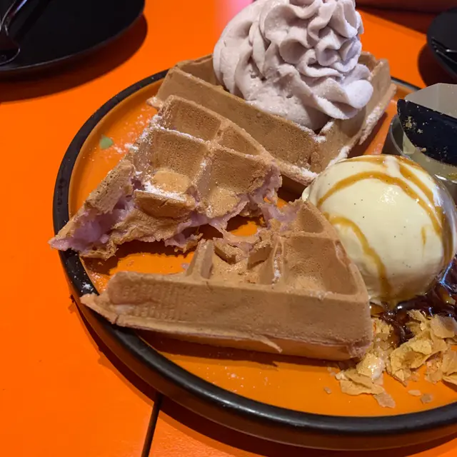 紫薯麻糬窩夫配紫薯忌廉及雲呢拿雪糕 ($88) ●●●●◐