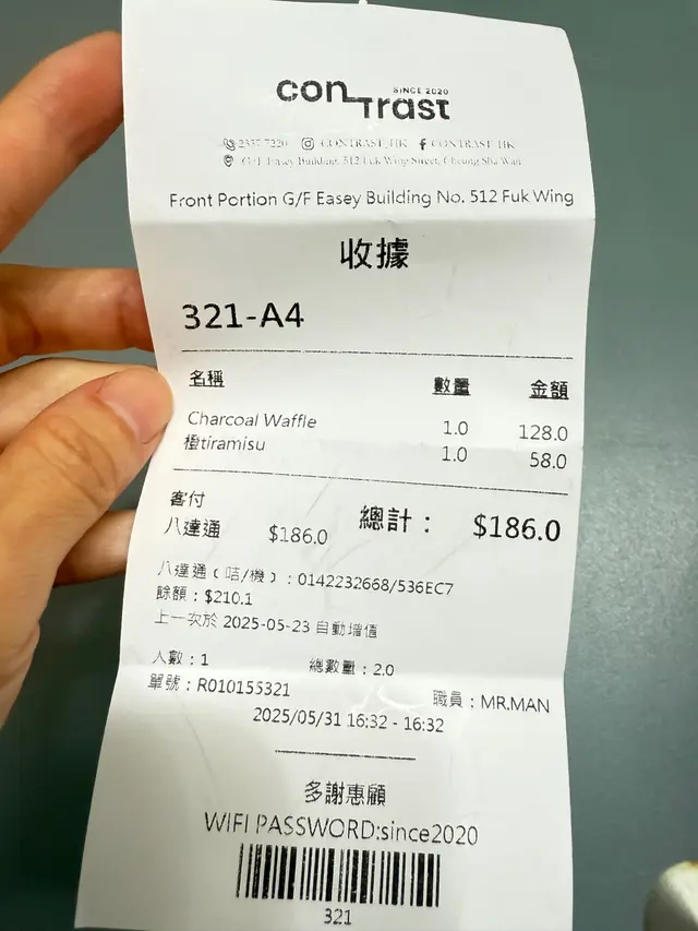 來到Contrast,居然見到前面有一條人龍,大概六至八人在排隊,因為專程來這裏食甜品,所以都繼續排,排了大概15分鐘就入座,不算等了很久。