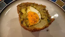 香料拌和綿密嘅薯蓉,加埋一隻烚蛋嚟食惹味又飽肚。