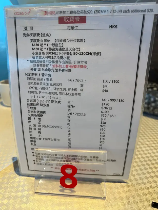 之前都坐過海景位,感受過呢個位置食住野望住個海,今餐坐普通枱8號檯,仲撞番上次服侍周到果位「英姐」每食完啲菜式,就換碟,基本上張檯唔會有好多野食放係到,英姐服務態度太好一定要比個手指公