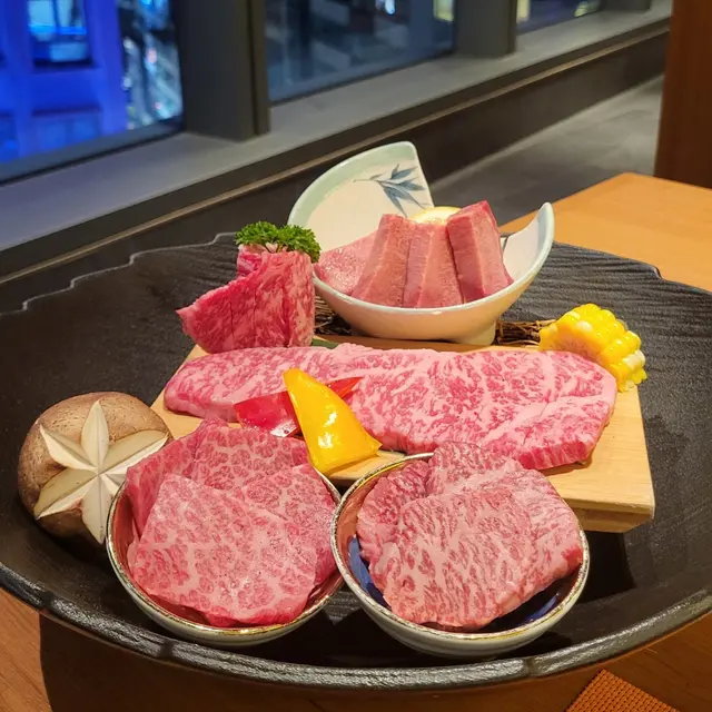 本日主角 “特選日本産和牛西冷及豪華燒肉拼盤”! 包括: 特選日本產和牛西冷、特選日本產和牛牛排肉、日本產和牛肩眼、日本產和牛上牛排肉、厚切牛舌!
