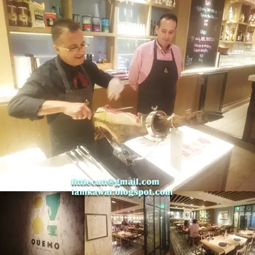 今次我地去左食西班牙菜,一入門口就見到好大隻Parma Ham, 兩位職員服待佢,之後同他們傾計,原來黑衫嗰位已經有25年切Parma Ham 經驗,好厲害啊!聽到O咀!