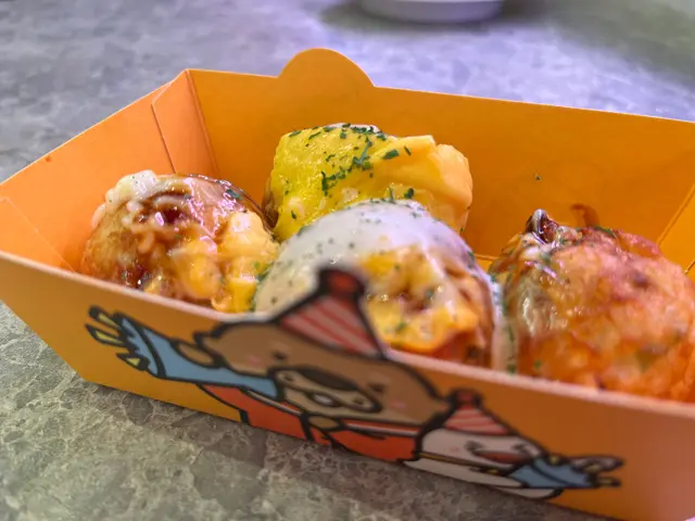 勁多芝士淋上面嘅章魚燒,外皮酥脆,包著煙靭彈牙嘅八爪魚粒+軟滑嘅滑蛋+沙律醬&豬扒汁調味,開胃又惹味