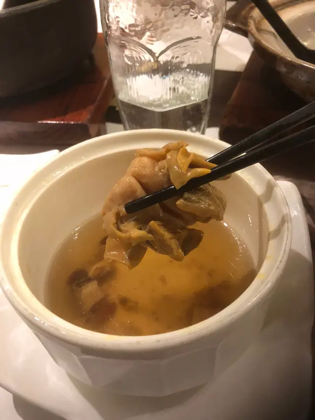 淮杞海螺頭湯,更是最精彩的一道。淮山、杞子、肉粒、雞腳、瑤柱和螺頭,不獨湯料十足,而且比例恰當,藥材味淡,能突出海螺鮮甜。肉與雞的湯底十分香甜。最精彩的是螺頭件頭不小,啖啖肉,非常好吃,而且這道菜才68元,性價比十足!