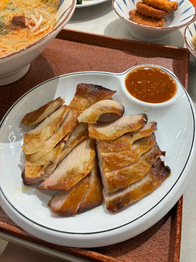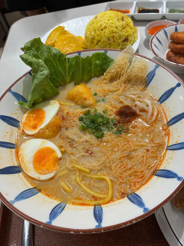 豬頸肉真係超大份,係意料之外咁多。肉質正常,唔會成口油,仲搭埋個甜酸醬,好食!喇沙就正常水準,有豆卜、響玲、生菜,仲搭埋有粒開左邊嘅溏心蛋,好似日本拉麵咁,都幾好食😂😂