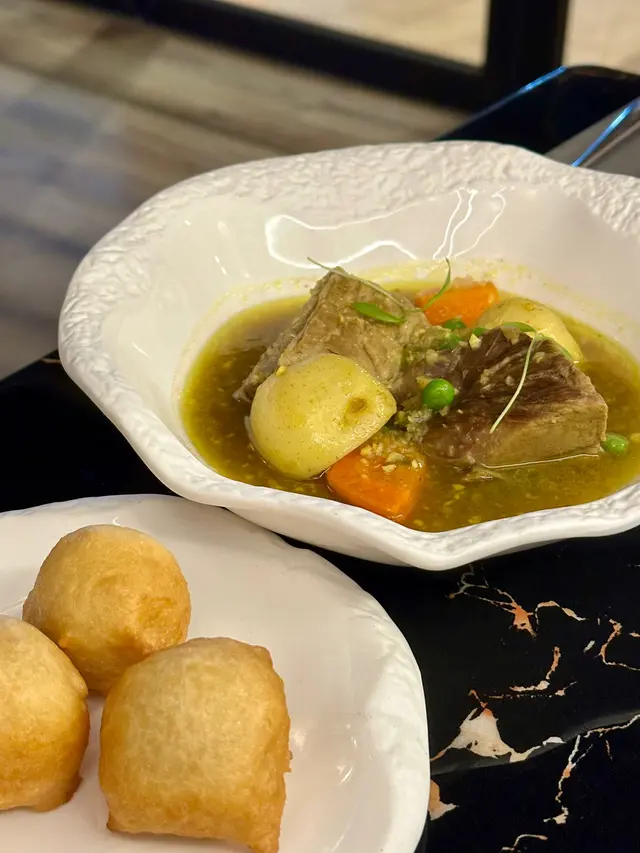 這是餐廳的招牌菜式,東印度燉羊肉配炸麵包球,羊肉肉質非常軟腍,足足慢煮超過16小時,而且羊味濃郁,麵包球口感有少許像沒有甜味的牛脷酥,麵團厚實,可以蘸上濃湯一同食用,很滋味