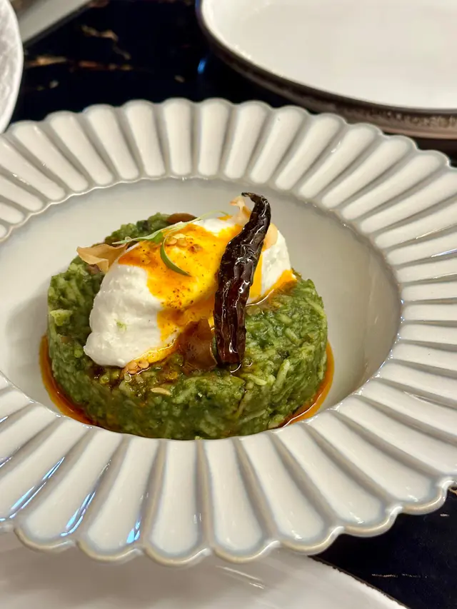菠菜香米飯是印度傳統健康食物,以米、蔬菜及香料一同燉煮,加上飯上的芝士增添奶香,感覺清新