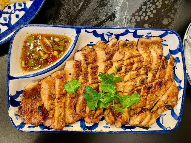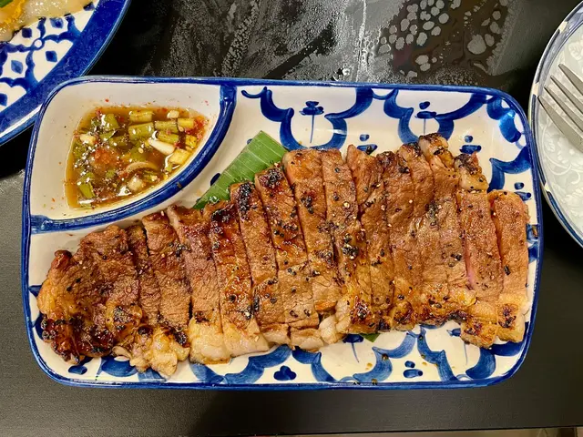泰式豬頸肉軟嫩有嚼勁,帶有一絲甜味,蘸上特製醬汁後更加開胃,值得推薦。