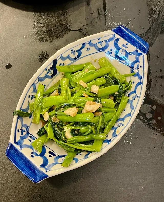 泰式蝦醬炒通菜清脆爽口,蝦醬味道濃郁但不會過鹹,很有風味。