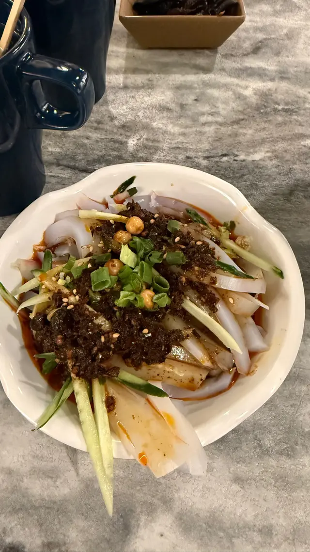 涼粉晶瑩剔透,口感爽滑,搭配酸辣醬汁與花椒油,清爽開胃。辣味與酸味平衡得宜,是夏日消暑的好選擇。作為前菜或配菜都非常合適。