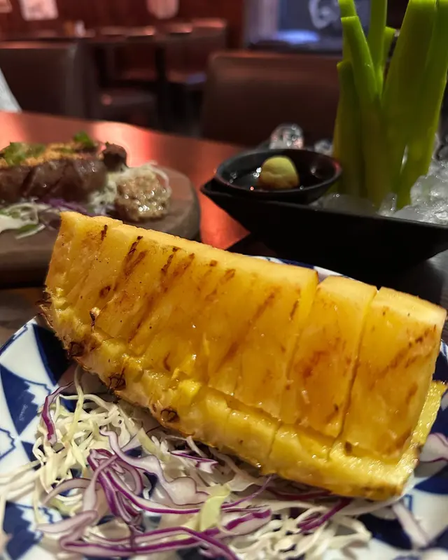 北海道蠑螺,鮮甜得不得了!螺肉彈牙又juicy,每一口都似喺海邊吃新鮮海產,超滿足!接著有燒甜菠蘿,烤得焦香甜美,酸甜滋味簡直是味蕾的party,連不愛甜食的朋友都爭住吃!