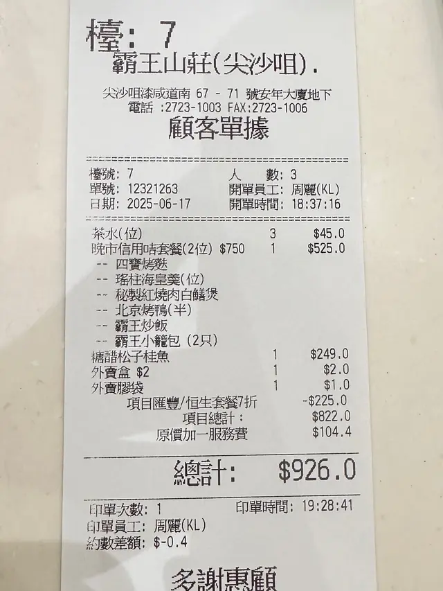 記得用指定信用卡埋單,套餐有7折(今次折咗$225!),真係好抵食!