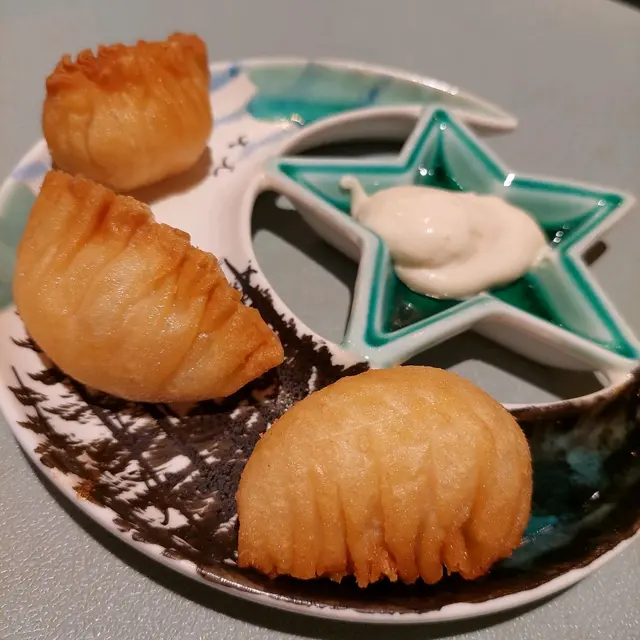 <炸蝦角> {$48/3隻>😋 擺碟超靚, 脆卜卜, 點埋沙律醬仲好味.