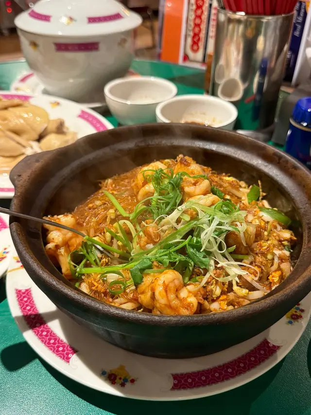 大虾开背爆炒,虾膏融进汤底。粉丝**吸饱海鲜咸香**,夹起黏连不断,镬气十足,是连本地人都肯回购的招牌。