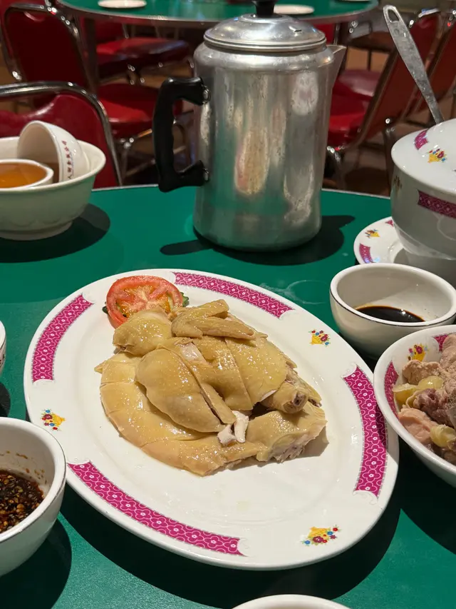 鸡皮爽滑,肉質緊实却**嫩得透光**。蘸传统薑蔥油,是广东人最爱的「鸡有鸡味」。