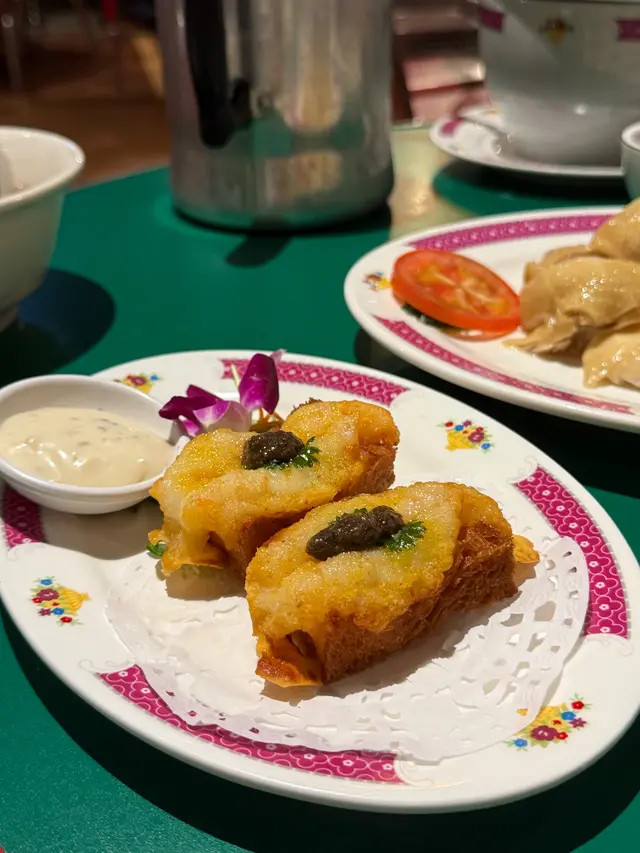 多士炸得**鬆脆不油**,蝦膠彈牙飽滿。点睛是那勺**黑松露沙律醬**——香气沉穩不抢戏,衬出虾的鲜甜。