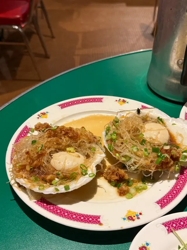 元贝肥厚如掌心,铺满**金银蒜茸**。蒸时锁住贝肉汁水,鲜甜中迸发蒜香,粉丝吸尽精华,一勺捞起最过瘾!