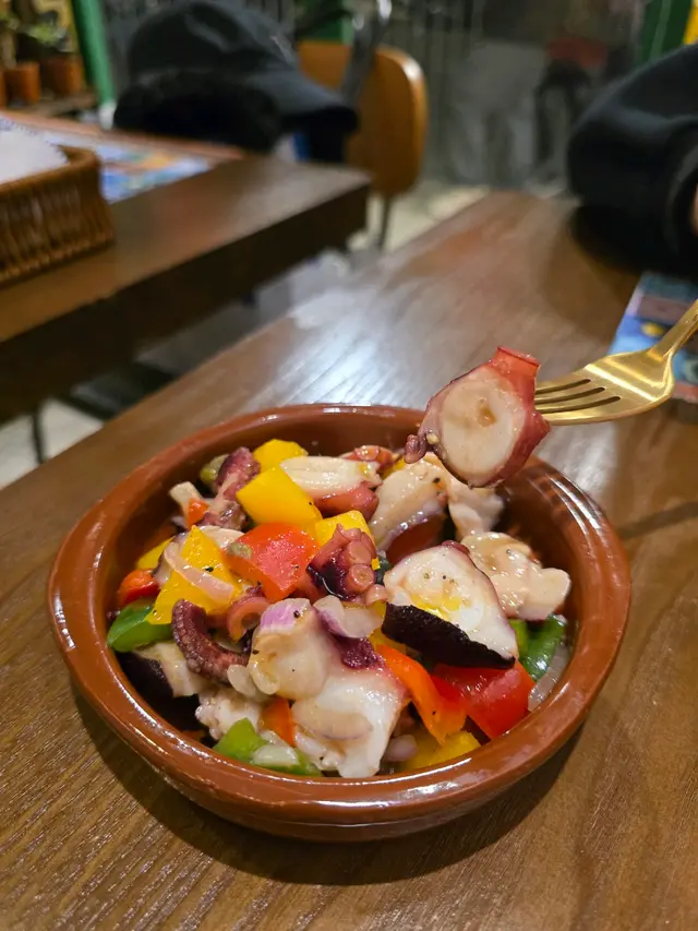 先點了一個西班牙蕃茄凍湯 ($42),質感非常濃稠,入面加了蛋碎及西班牙火腿,非常甘香美味,非常推薦。西班牙八爪魚沙律 ($52) 八爪魚好有嚼口,伴菜非常清甜。西班牙小清椒 ($58) 烤至焦香且香甜。
