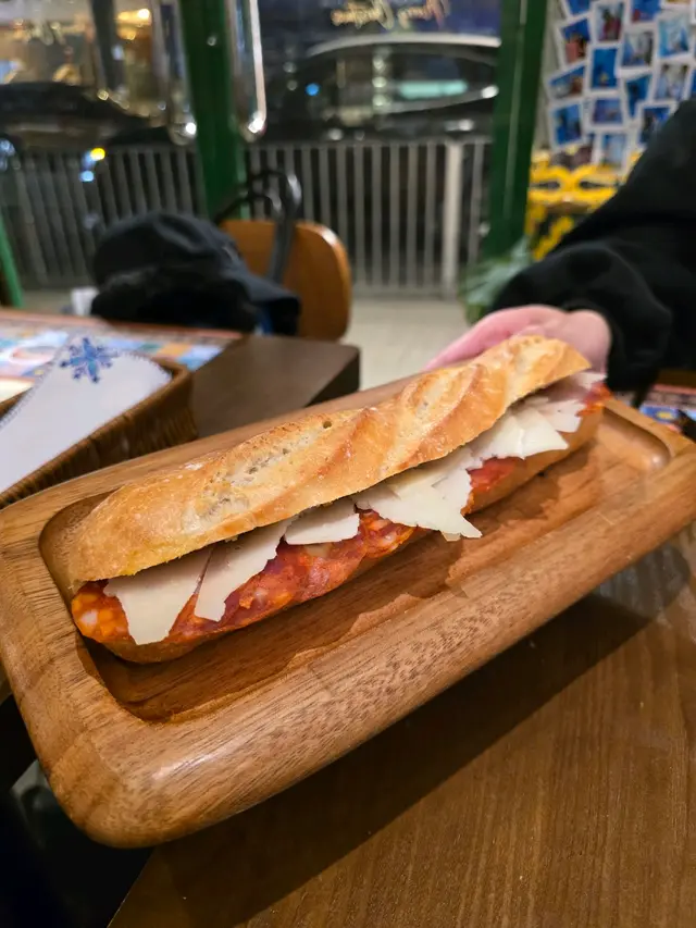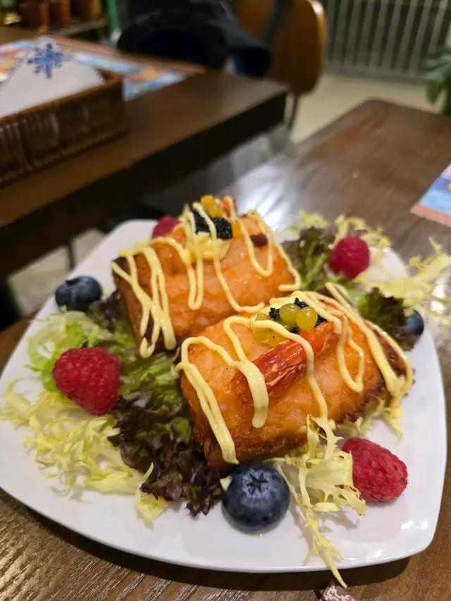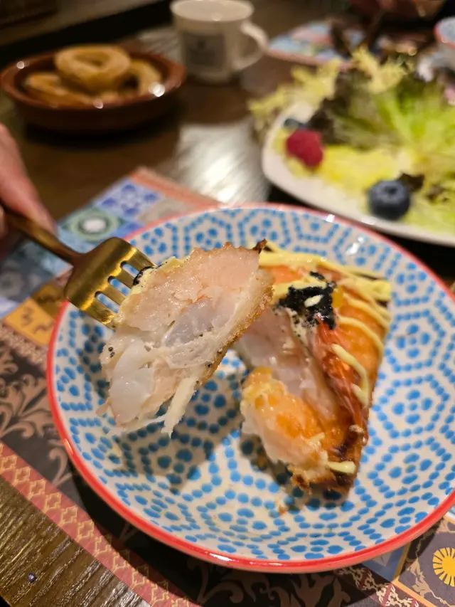 西班牙辣肉香腸棍包 ($80) 大大大大推薦,愛包人士必點!!!店主特登從法國訂購這個棍包,棍包烘烤過後外脆內軟,很有小麥香,另一賣點係熱辣辣嘅麵包把辣肉香腸的辣油逼出,食落更香口。迷利墨汁西班牙炒飯 ($98) 粒粒分明,很有咬口,整體也不錯。這個是特別order的黃金黑松露雙重蝦多士 ($48/件),是店內一個非常有人氣的多士,喱度一件嘅份量已經等同出面餐廳嘅兩件,非常厚身,除了蝦膠外,仲有兩至三隻原整爽滑嘅蝦肉,非常足料!