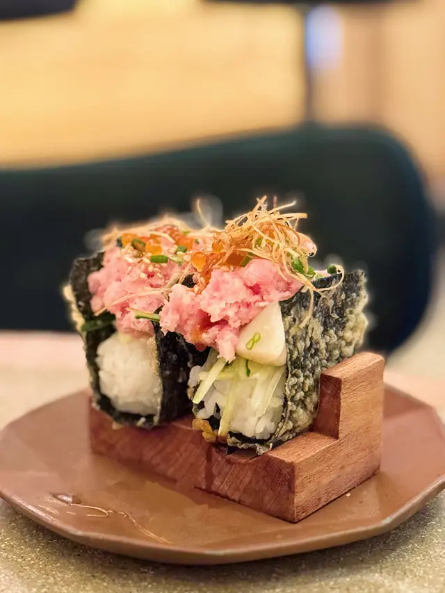 炙燒拖羅油脂香+三色紫菜脆口~ 一咬直接到日本簡單捲出居店風味。