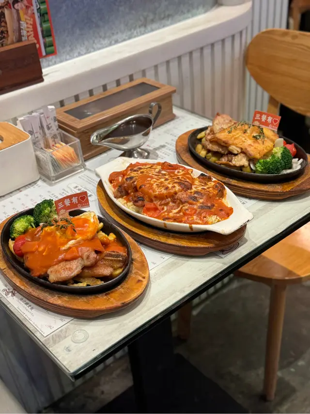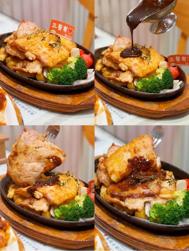 另一款懷舊鐵板套餐,同樣有餐湯忌廉粟米湯、鐵板主菜、甜品、咖啡或者茶,呢款係雞扒同埋魚柳嘅配搭,揀咗黑椒汁,杰身嘅黑椒汁加入雞扒同埋魚柳度好惹味,仲可以揀燒汁、蒜蓉汁或者沙嗲汁添