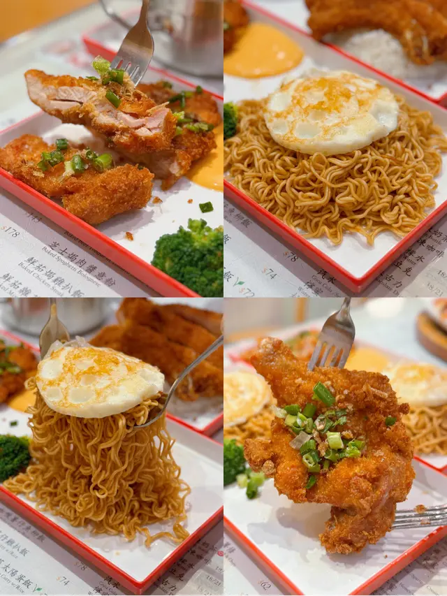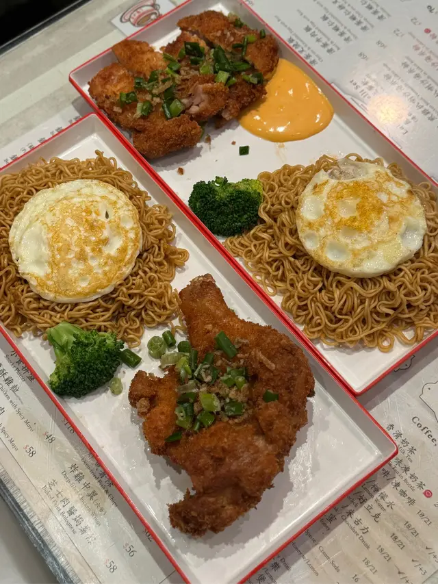 叫咗兩款蔥油撈麵,分別係吉列雞扒同埋炸雞髀,吉列雞扒切件上枱,而炸雞髀真係好大件,撈麵係用咗公仔麵嚟整,入口帶有淡淡嘅蔥油香,係另一個唔錯選擇