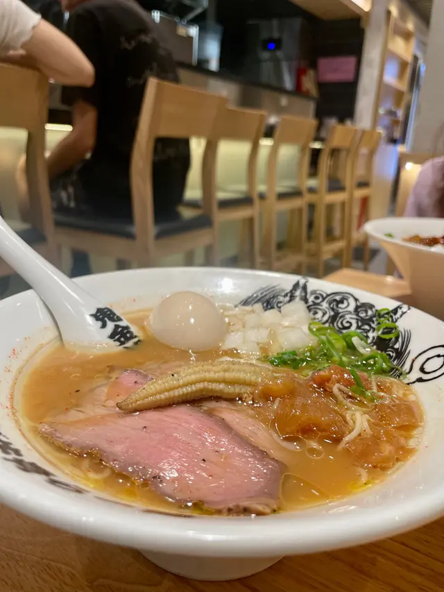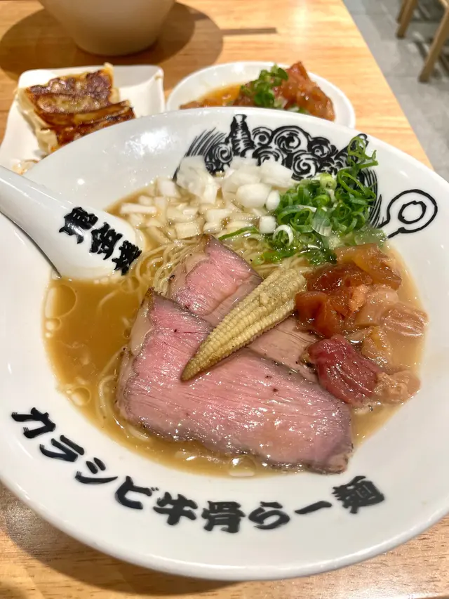我當晚想食清清地,所以叫咗✨叉燒牛骨湯拉麵🍜。呢碗拉麵配上洋蔥、香蔥、玉米筍、牛筋同叉燒,叉燒大大舊而且好腍,肉質鮮嫩到令人滿足!拉麵則係粗身彈牙,每條麵條都吸晒湯汁,牛骨湯頭如牛奶般絲滑,飲落去真係好正🤤。