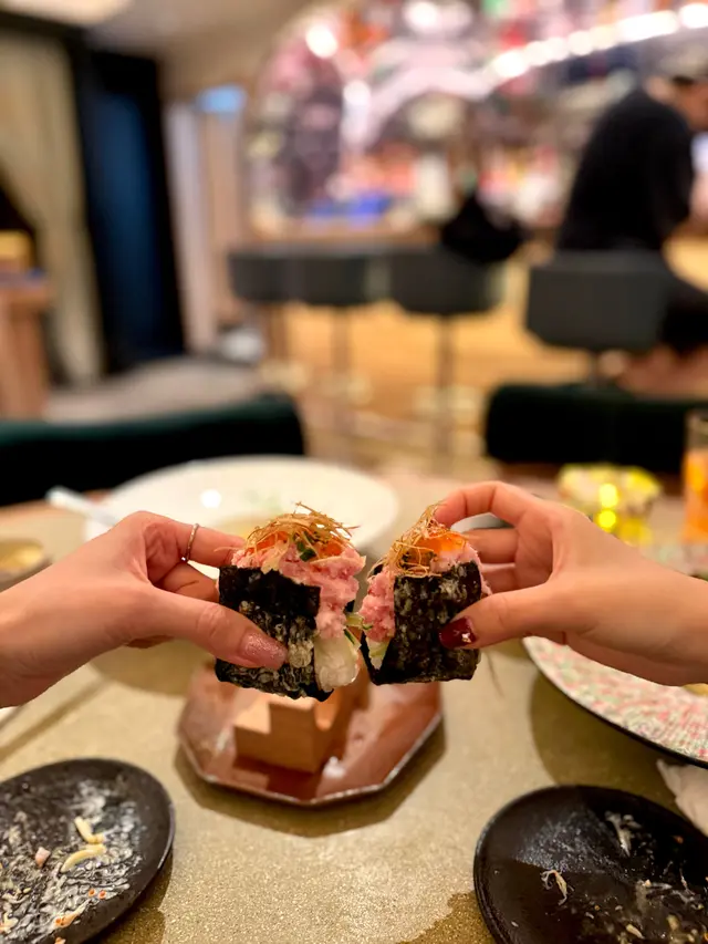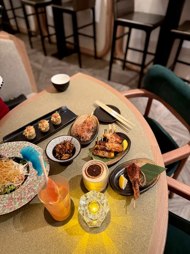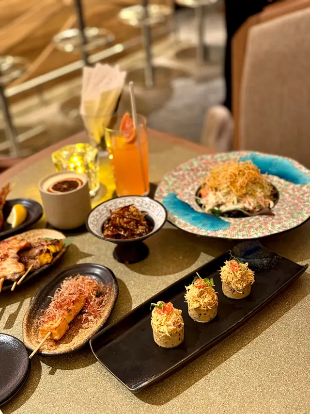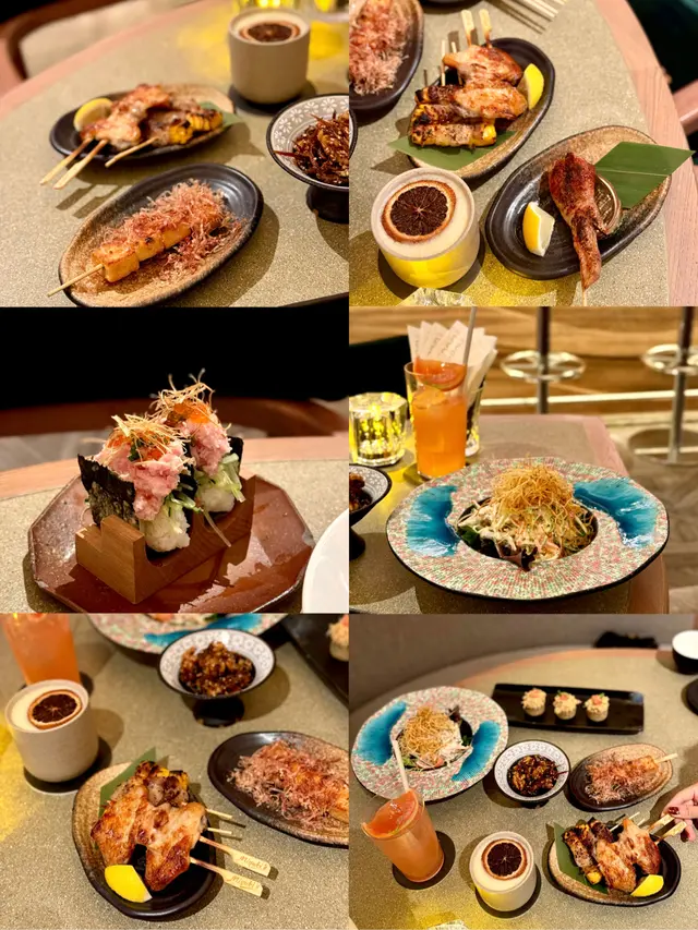 食物滿有特色~例如串燒拼盤🍢、美國Prime肉眼扒🥩 & 葱拖羅三色紫菜TACO 壽司手卷,涵蓋小食以至主食及甜品,總有一款岩你口味喔🤗。