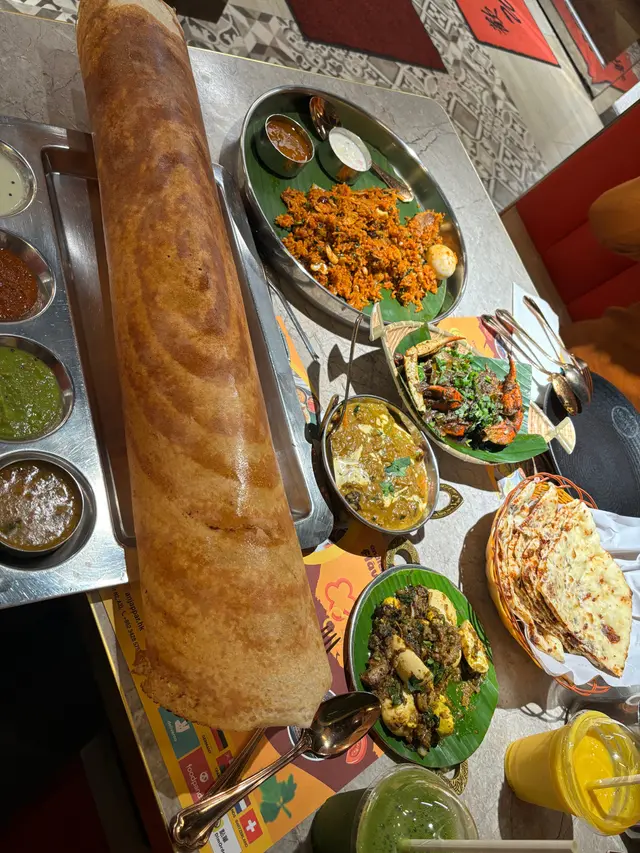 超巨型的賣相拎上檯好吸引,薄餅鬆脆🉑口,牛油的香氣非常濃郁,配上3款醬汁,正宗印度特色美食🤗