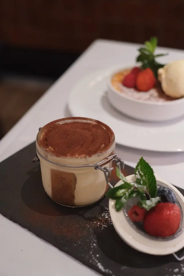 甜品點了ᴛɪʀᴀᴍɪꜱᴜ及薰衣草香焦糖布甸,整體來說比較甜,個人覺得焦糖布甸味道較出色,有一大球雲尼拿雪糕!另外餐廳有提供多款特調,ʙᴀʀ枱位置有多款種類的酒,來點杯飲料跟朋友聚會也不錯👯‍♀️
