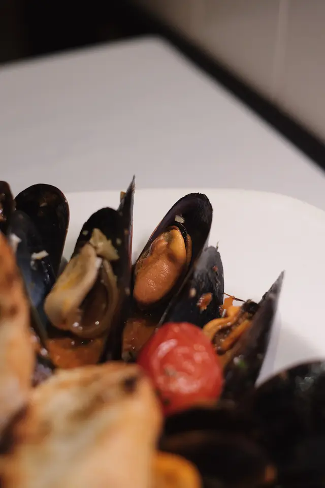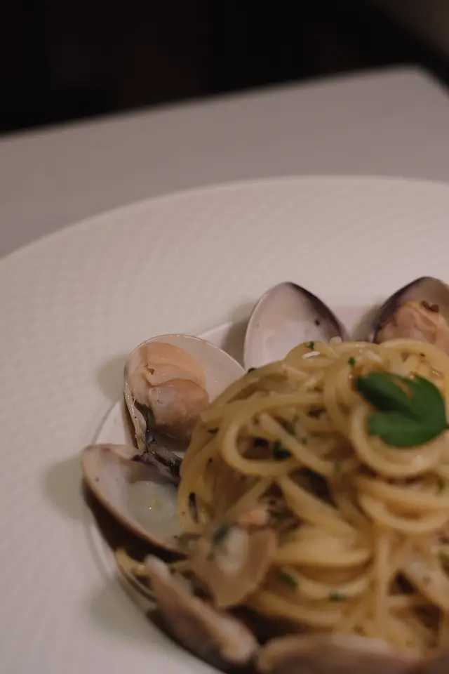 青口有蕃茄及白酒蒜蓉兩款口味,試了香茜辣蕃茄醬黑青口,𝟧𝟢𝟢ɢ份量也不少,足夠二人分享!蕃茄味濃郁但不會很辣,黑青口雖然細隻但肉質會較嫩!推薦白酒煮意大利鮮蜆意粉,意粉質地煮得剛好,白酒蒜蓉加上蜆的鮮甜味很夾呢!