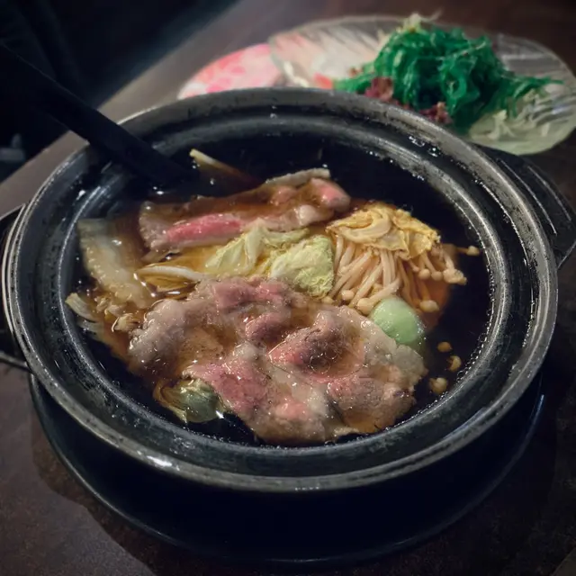 主要提供較飽肚嘅烏冬、粥飯及鍋物🍲叫左清酒煮蜆但無乜酒味同有沙🤥仲叫左個牛肉鍋同海皇粥,牛肉上枱時仲係生生地,等一陣食口感岩岩好,鍋裡仲有菜同菇,均衡番今餐營養🤫對個粥本來有期望,但覺得唔夠鮮味但都幾綿滑