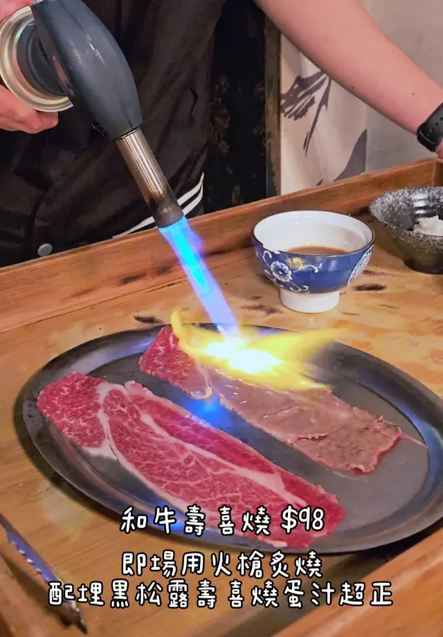 💬 肉香四溢,和牛片輕輕一灼配上黑松露壽喜燒蛋汁,送飯絕配